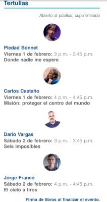 Habrá tertulias abiertas al público en donde estarán escritores como Piedad Bonnet y Jorge Franco, y se dará espacio a la firma de libros. Aquí está la programación: