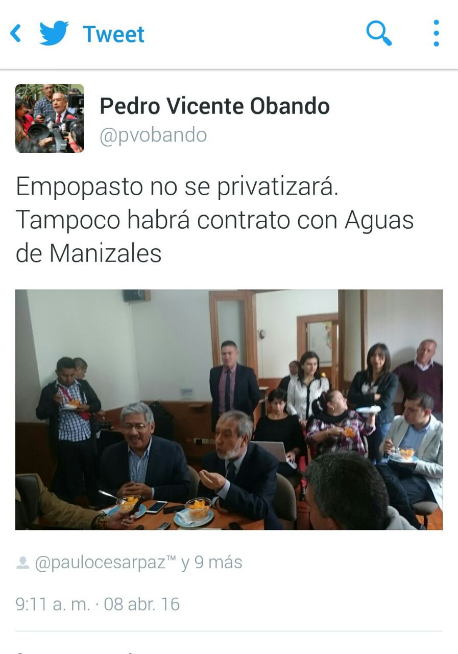 El estruendo que sacudió a Pasto en los últimos días respecto a la posible privatización de la empresa oficial EMPOPASTO S.A. E.S.P., encargada del tratamiento y distribución del agua en la ciudad, comenzó a amainar tras el anuncio telegráfico que apareció en el Twitter del alcalde de Pasto, Pedro Vicente Obando: "Empopasto no se privatizará. Tampoco habrá contrato con Aguas de Manizales", y que, además, demostró que la presión pública de inconformidad exteriorizada a través de las "redes" (especialmente Facebook) fue determinante, como nunca antes se había registrado en el medio.