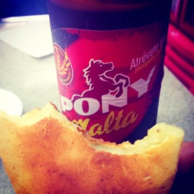 Se acerca una señora y me pregunta qué se me ofrece. Le pedí un caldo y ella me cuenta que el caldo de costilla viene en “combo” con huevos al gusto, pan blandito y café por 7.500 pesos. Yo le hice mis variaciones y en vez de chocolate, café o jugo de naranja le pedí una pony malta, adicioné dos pan de bonos y le pedí que con el caldo me trajera un limón partido por la mitad (herencia de mi abuela para acompañar cualquier tipo de sopa, excepto el ajiaco).