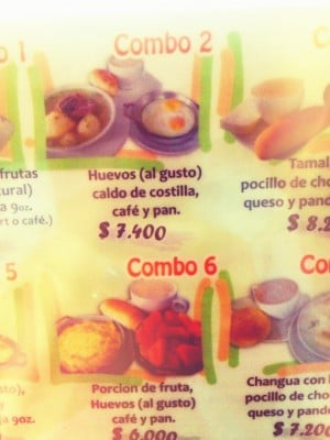 En la mitad de la 63 , arriba de la 13 encontré lo que tanto anhelaba un “desayunadero”, que me recibe con un señor afuera dando degustación de mini pan de bonos, asegurando que eran mejor que en la “sucursal del cielo” y bueno, con todo el respeto que se merecen los caleños, la competencia está dura. El lugar estaba lleno, pero conseguí puesto en la barra…frente a los pan de bonos recién salidos del horno.