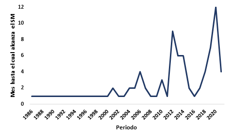 Gráfica 1- Comportamiento histórico del mes hasta el cual alcanza el crecimiento del SM