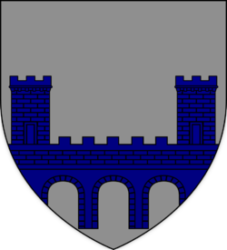 Símbolo: Una trucha plateada, saltando sobre campo ondulado de azur y gules