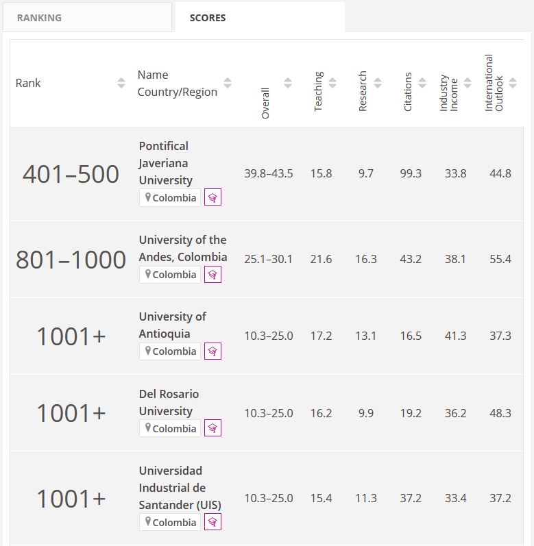 Somos la Universidad #1 en Colombia por sexto año consecutivo según Times Higher Education World University Rankings 2022 y en el ranking QS somos la #3 en el país y la #14 en Latinoamérica. Gracias, javerianos, por continuar demostrando que somos los mejores para el mundo. pic.twitter.com/OaplJWTDZl
