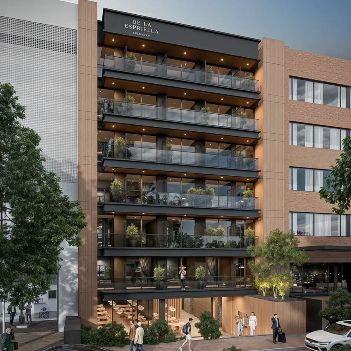 El edificio “De la Espriella” no será un proyecto cualquiera. Contará con 52 apartasuites disponibles en dos estilos de diseño: Alba y Notte. La propuesta incluye un restaurante de alta cocina abierto al público, recepción 24 horas, gimnasio exclusivo para los huéspedes y un rooftop de acceso público, pensado como vitrina social y punto de encuentro en plena Zona T.