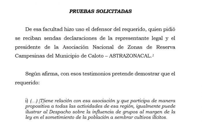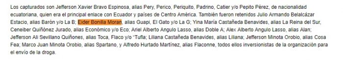 Éider Bonilla Morán. Vivía en la Zona de Reserva Campesina de Caloto. Presentó como prueba el testimonio del presidente de dicha zona, y reconoció tener sembrados de coca según él por presiones de los guerrilleros. Mientras tanto la Fiscalía lo asocia con Alias Fantasma, un narco guatemalteco muy poderoso en el Valle, Quindío y Cundinamarca. Según Fiscalía, Éider Bonilla tiene tres alias: El Gato, Guapi y La G, y que por esos cargos tiene orden de extradición de Estados Unidos. Ahora dice que era miembro de las FARC.