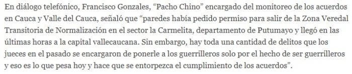 Las FARC directamente ha tachado el nombre de 160 personas que han constatado que no tenían relación con su organización. "Cómo cree que los del Secretariado se van a jugar todo el proceso e incluso penas en Estados Unidos solo para incluir gente que no tiene nada que ver con las FARC. Hay que entender que es un proceso complicado, que no ha acabado y que todos están poniendo de su parte" dice Martínez.