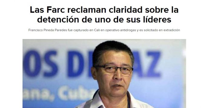 Francisco Pineda Paredes. Era uno de los comandantes del Frente 48 de las FARC, que militaban en el Putumayo. Lo capturaron en Cali, mientras contaba con un permiso para estar fuera de las zonas veredales, pues también tenía orden de extradición de los Estados Unidos.