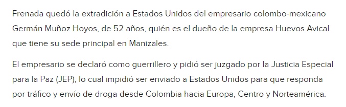 Germán Muñoz Hoyos. Era el dueño de la empresa avícola más grande de Caldas y tenía pedido en extradición. No aparece con ningún vínculo con la guerrilla.