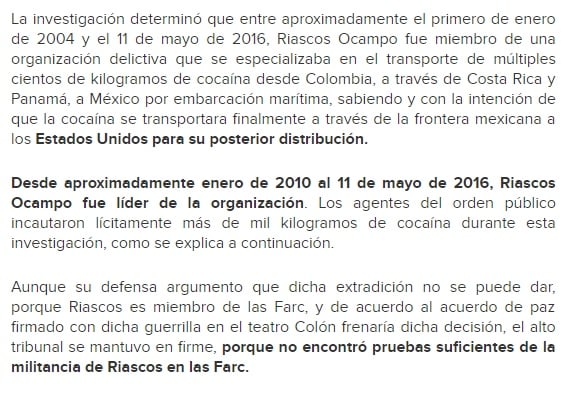 Osías Riascos. Era la cabeza de un grupo que movía toneladas de cocaína, pero él luego testificó que era de las FARC. Ante la imposibilidad de demostrarlo, su situación está en el limbo.