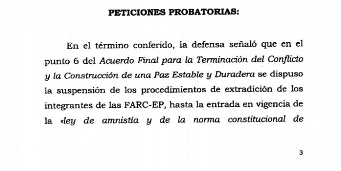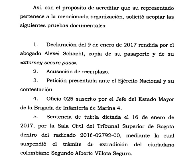 Rubén Durán Moreno. También tiene suspendida su extradición. Para mostrar que formaba parte de las FARC, anexó pruebas entre las que se encuentran el testimonio del abogado que lo pidió en extradición, Alexei Schacht.