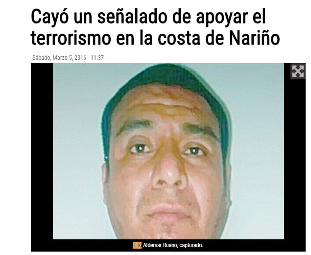 Tito Aldemar Ruano. Fue capturado por pertenecer a “redes de apoyo al narcotráfico” el 5 de marzo del 2016 en Tumaco. En una carta, Presidencia de la República le confirmó a Ruano que habían recibido su postulación como miembro de las FARC, y que la Oficina del Alto Comisionado había aceptado su nombre en la lista de entegrantes de la guerrilla.